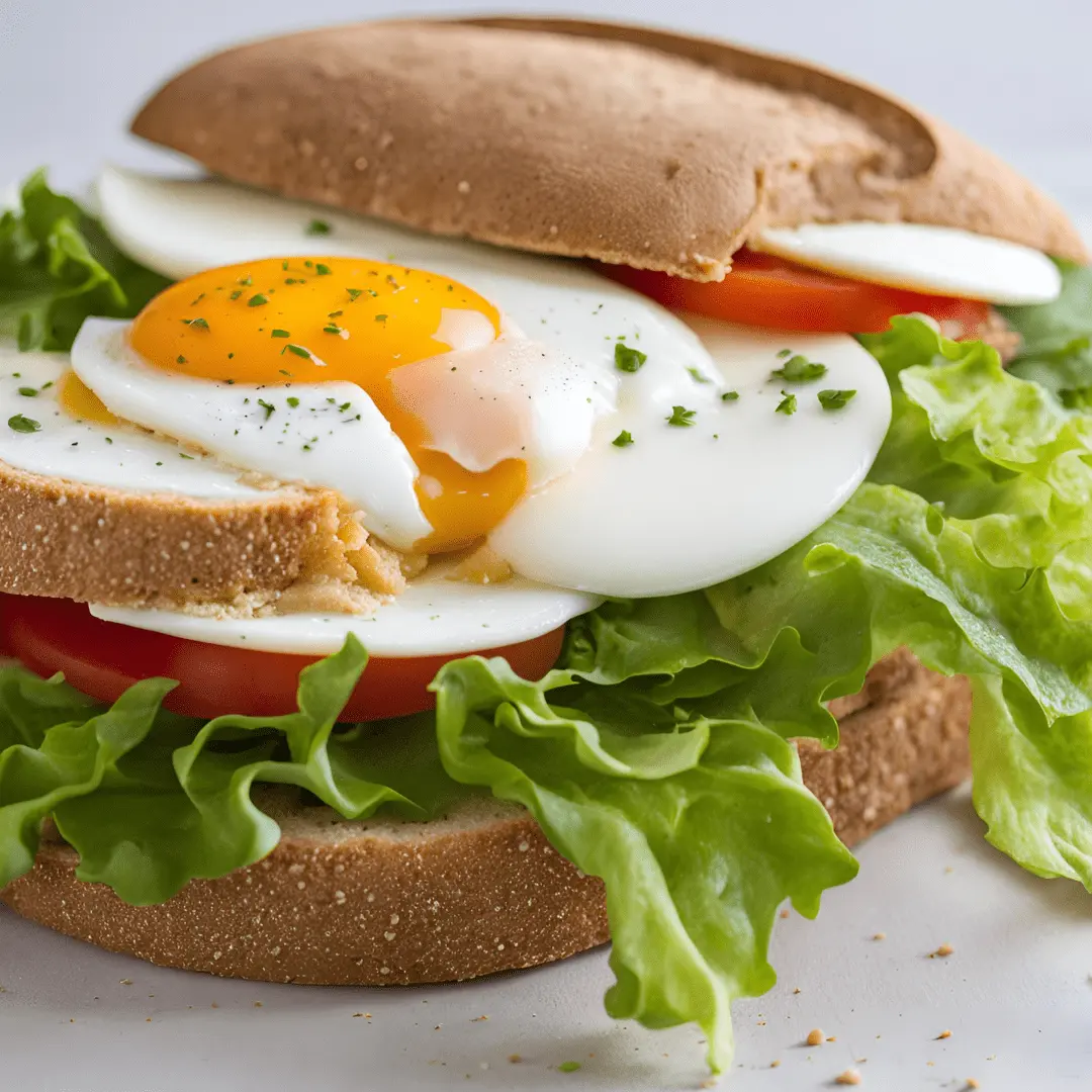 Pão de fermentação natural de trigo, ovo, mussarela, alface e tomate