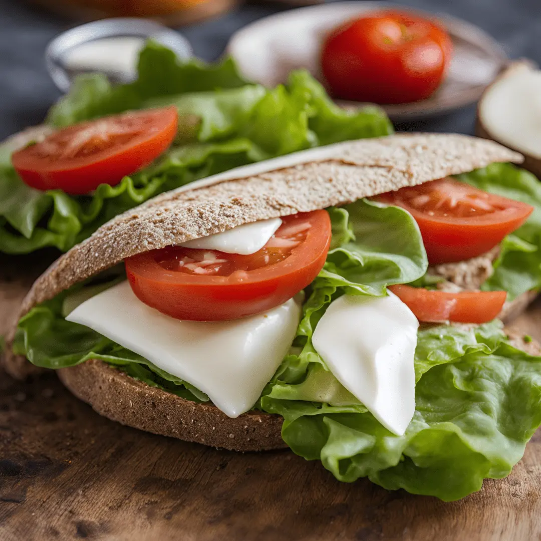 Pão de fermentação natural de trigo, mussarela, alface e tomate